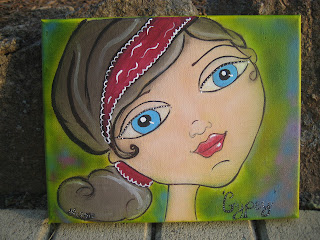 This next piece is another of my experiments with the airbrush that I got for Christmas. I used the air brush for the skin, background and hair then added details over the top. I really do like the look of the airbrush it gives it a softness that I'm not able to get with a paint brush. I think though that it's going to take me a long time to be able to do details with an airbrush it really is tricky but I really am having fun trying new things!!!